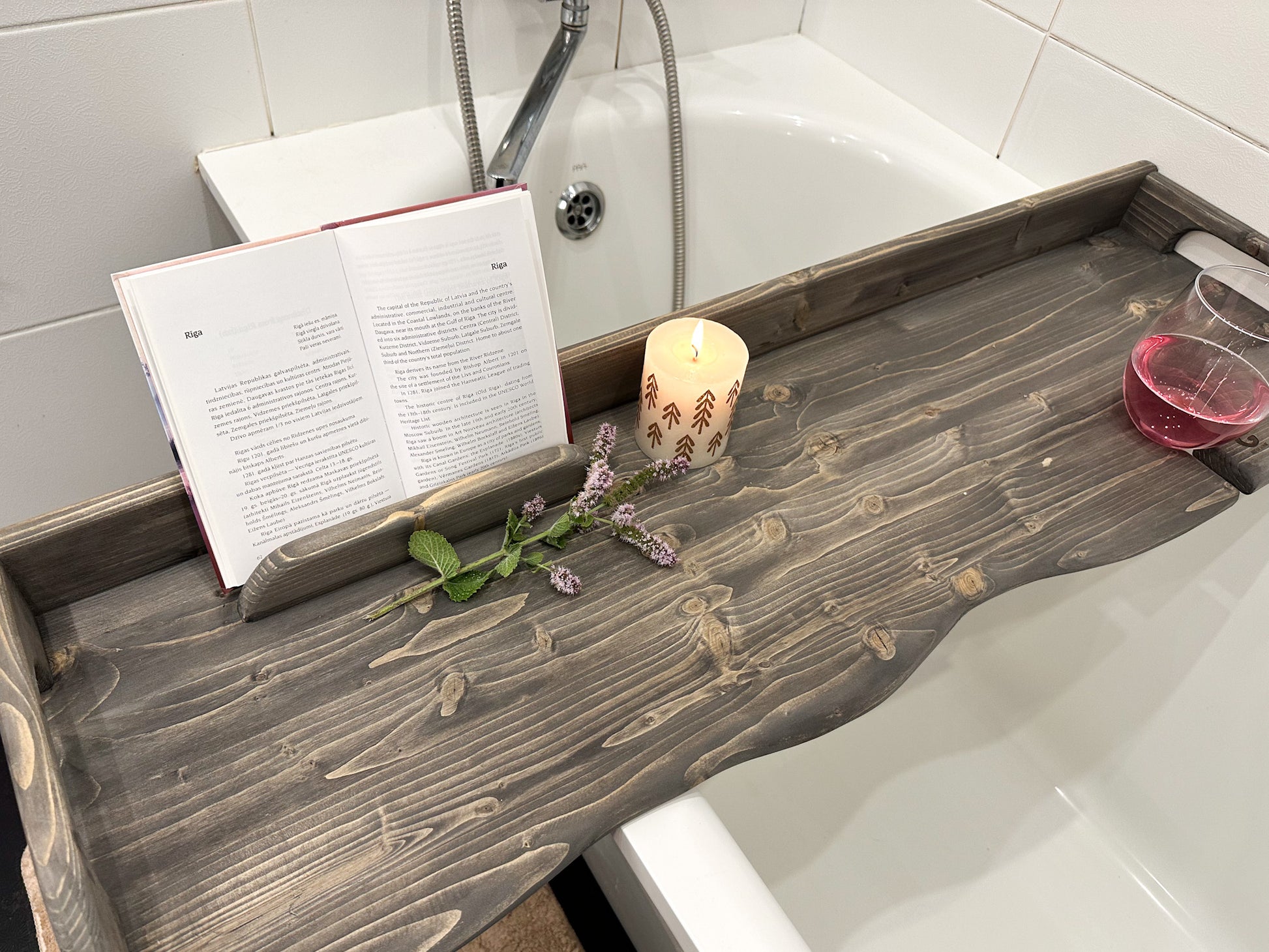 Bathtub caddy wooden bathroom tray for home spa relax rituals self care gift idea Handmade from solid wood with live edge